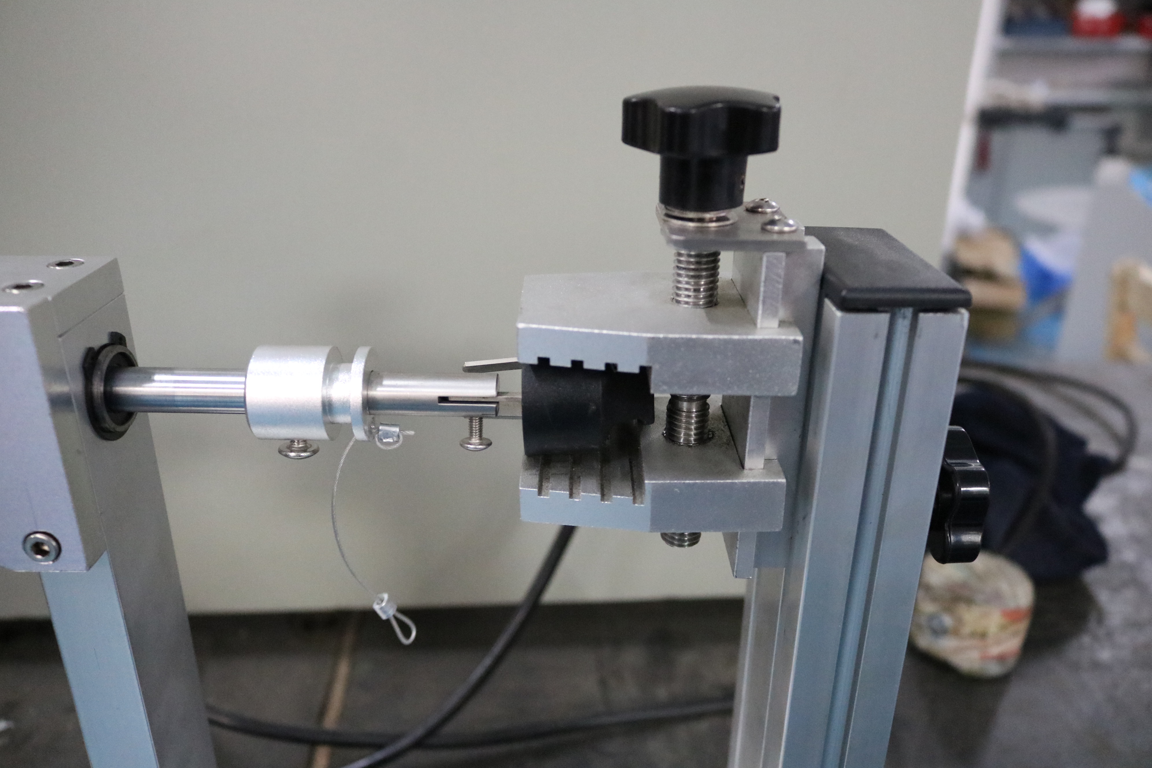 通過定滑輪用掛繩連接的砝碼來實(shí)現(xiàn)對(duì)插腳的拉力測(cè)試,同時(shí)使用一定扭矩臂的轉(zhuǎn)輪和砝碼來施加扭矩,從而評(píng)估插腳的耐扭力性能。