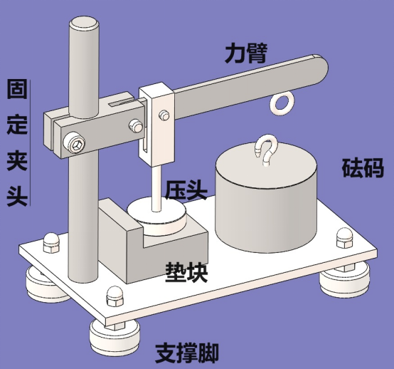 3、將帶鉤砝碼鉤住力臂端部的掛鉤環(huán)內(nèi),保持砝碼穩(wěn)定無晃動(dòng)狀態(tài)5min。