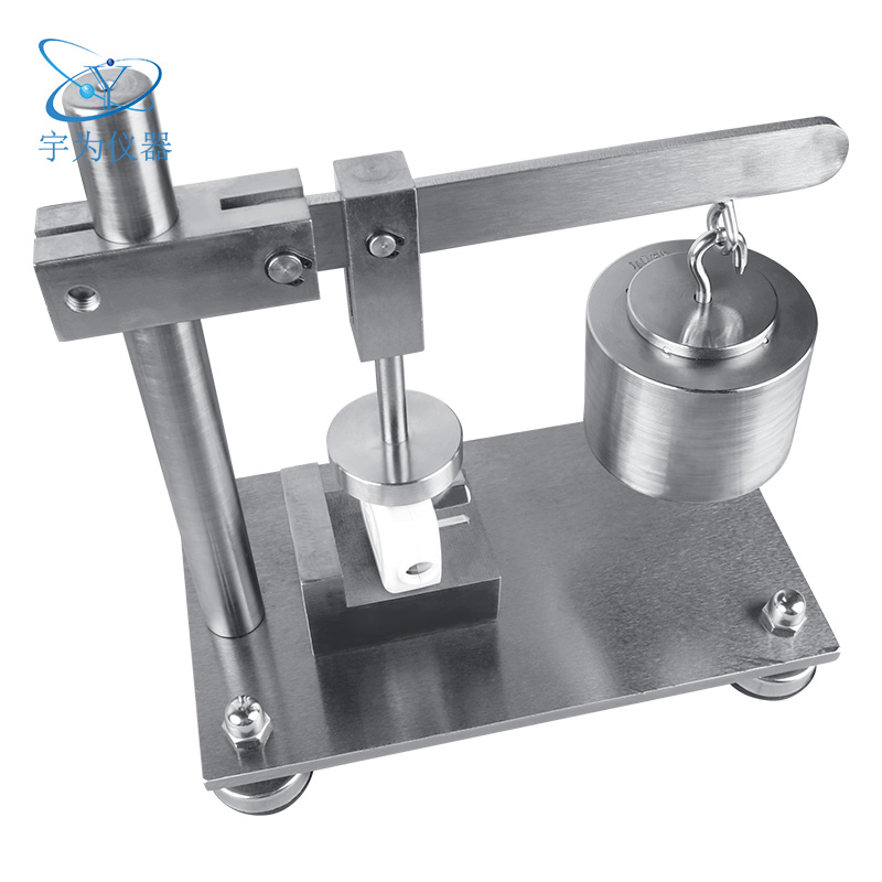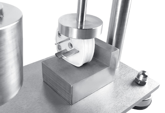 1、固定夾頭升至合適高度預(yù)固定(壓頭與墊塊距離略大于被測(cè)試驗(yàn)樣品厚度),然后將試驗(yàn)樣品放在鋼制壓頭和墊塊之間。