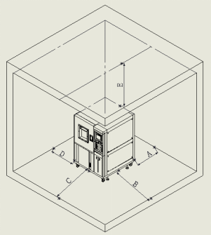 1、地面平整,通風(fēng)良好 2、設(shè)備周圍無強(qiáng)烈振動(dòng) 3、設(shè)備周圍無強(qiáng)電磁場影響 4、設(shè)備周圍無易燃、易爆、腐蝕性物質(zhì)和粉塵 5、設(shè)備周圍留有適當(dāng)?shù)氖褂眉熬S護(hù)空間,如下圖所示: