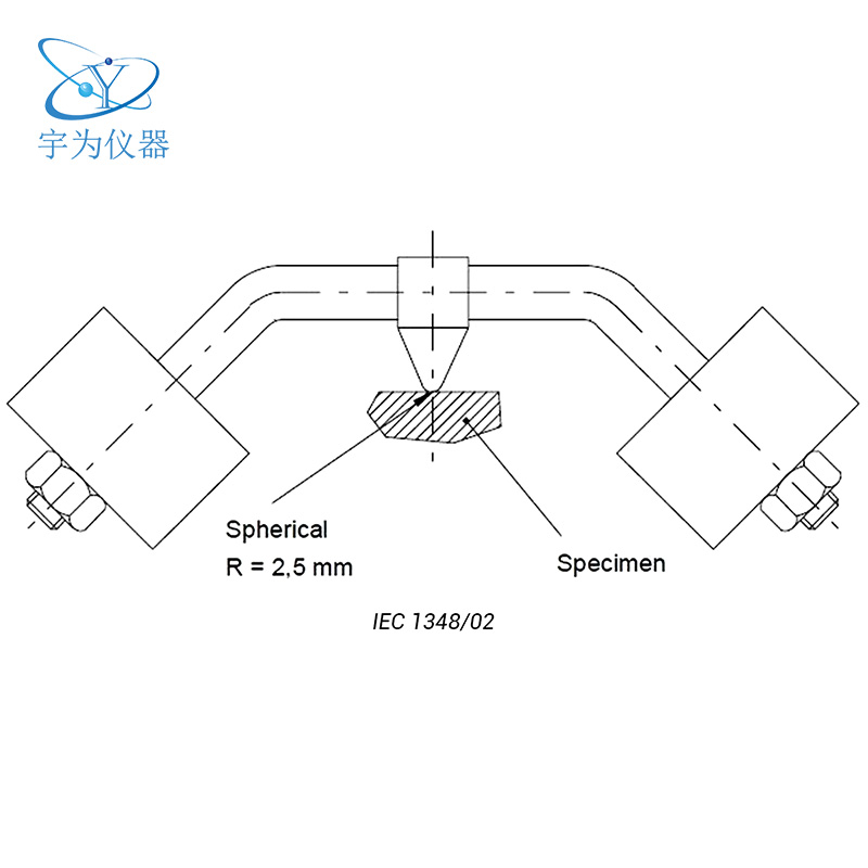 按標準圖38,該裝置需配合高溫箱在40/70/125±2°的溫度下試驗1小時,然后在10s內浸入冷水冷卻至常溫,經過試驗后,測量的球壓痕直徑不得大于標準規定的壓痕,即是壓痕不得大于2mm。