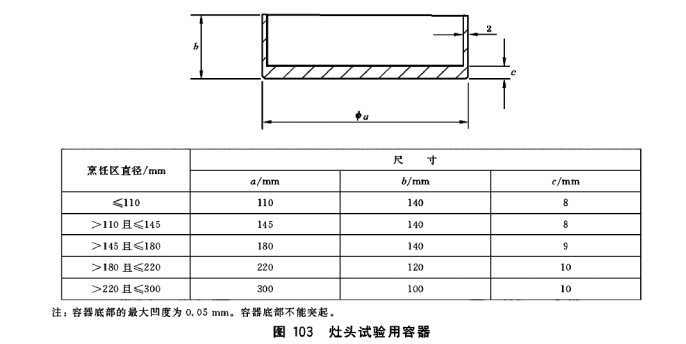 鋁鍋:商業用鋁制成,平底有蓋,滿足表101容積要求及圖103參數要求,主要用于盛水煮沸試驗