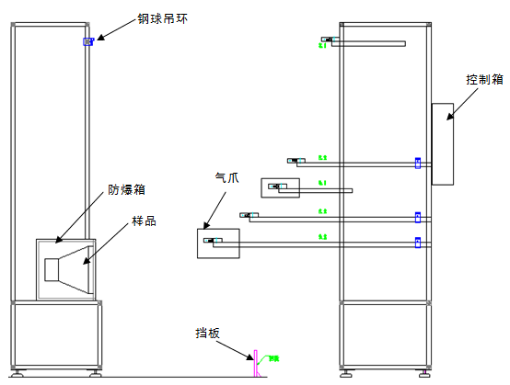 在地面上離管面投影處500mm、高250mm的地方放置擋板,以及在2000mm處的同樣擋板,以收集可能飛濺的碎片。測試后,檢查是否有大于2g的碎片飛過這些擋板。